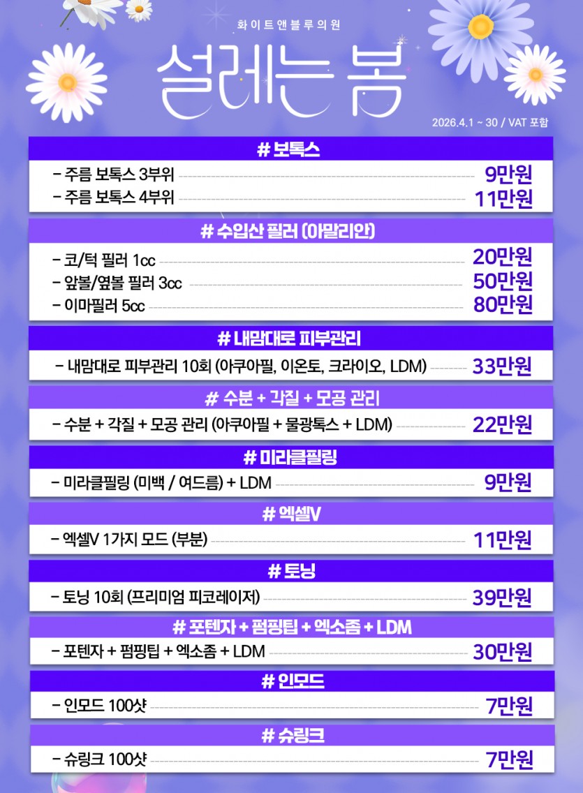 화이트&블루의원 4월 이벤트 안내 페이지 정보 작성자 최고관리자 댓글 0건 조회 331회 작성일 26-03-31 14:44 목록 본문 화이트&블루의원 4월 이벤트 안내 다음글화이트&블루의원 이브타이탄 이벤트 26.03.04 댓글 0 댓글목록 등록된 댓글이 없습니다.