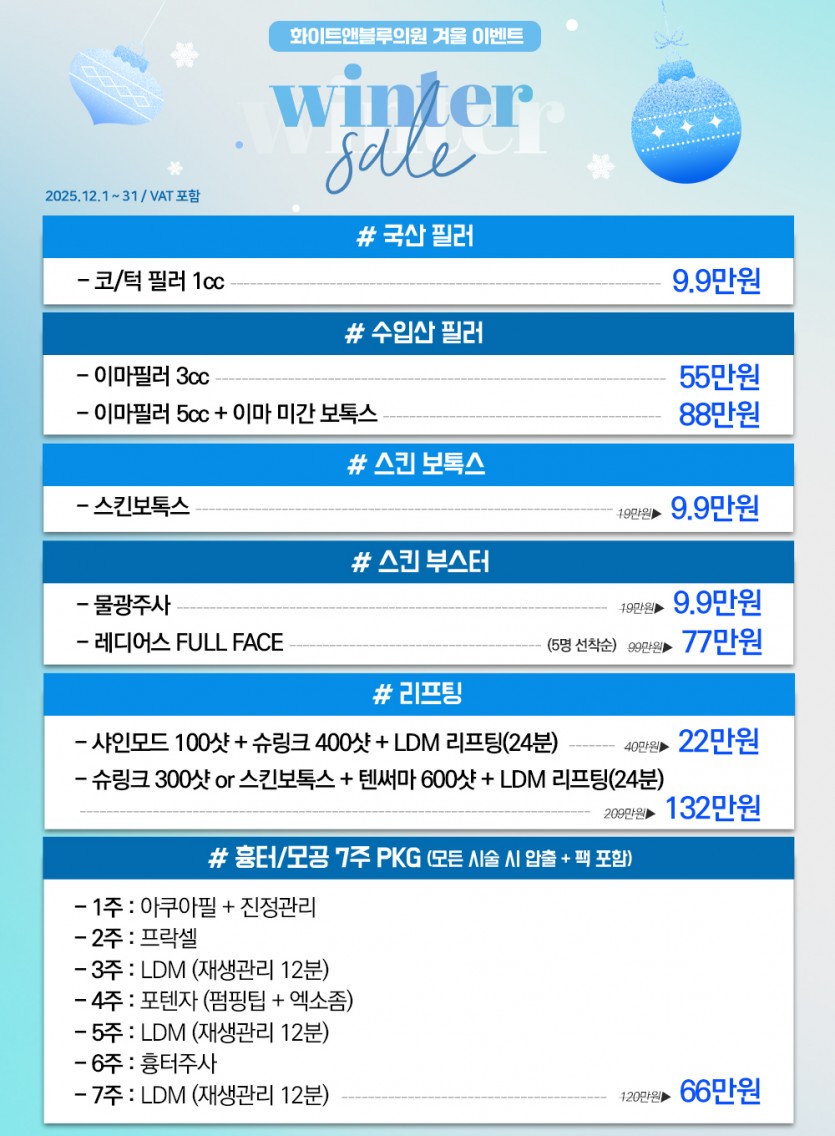 화이트&블루의원 12월 이벤트 안내 페이지 정보 작성자 최고관리자 댓글 0건 조회 192회 작성일 25-11-28 10:40 목록 본문 화이트&블루의원 12월 이벤트 안내 다음글화이트&블루의원 12월 휴진일 안내 25.11.24 댓글 0 댓글목록 등록된 댓글이 없습니다.